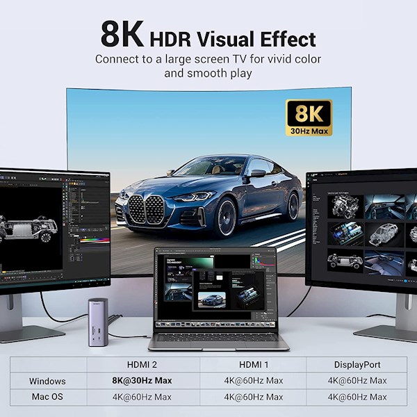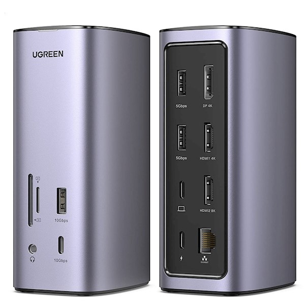 USB-C ჰაბი UGREEN CM555 (90325), Type-C Docking Station, HDMI, USB, Ethernet, SD/TF, 3.5mm, Gray