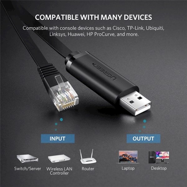 USB LAN კაბელი UGREEN CM204 (50773) USB to RJ45 Console RS232 Cable Serial Adapter for Router 1.5m USB RJ 45 8P8C Console Converter USB Cable