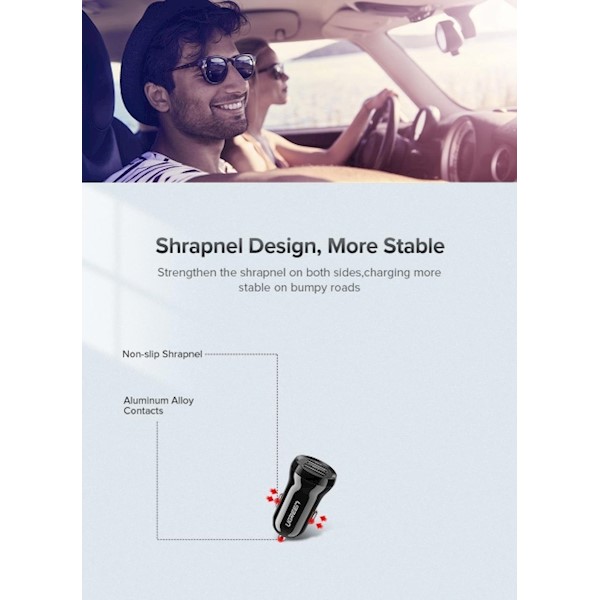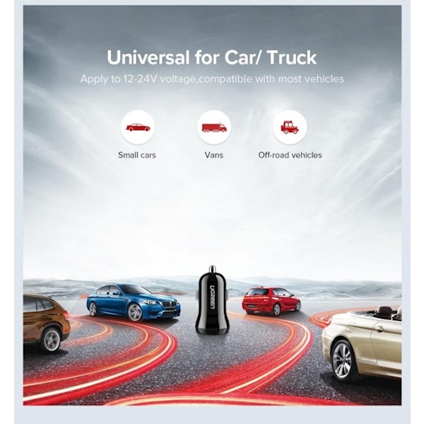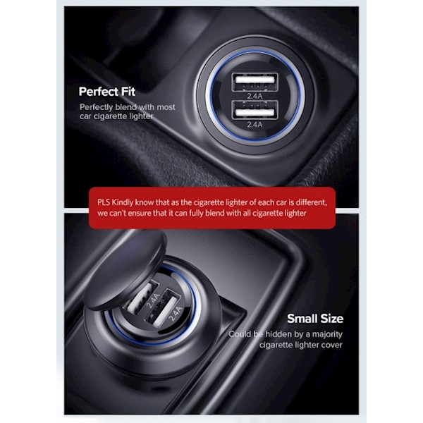 მანქანის USB დამტენი UGREEN ED018 (50875) Car Charger Dual USB Mini 5V / 2.4A Max