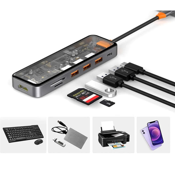 WiWU CB007 Space Gray არის მრავალფუნქციური USB ჰაბი, რომელიც შექმნილია თანამედროვე მომხმარებლის საჭიროებებისთვის. ელეგანტური და გამძლე ალუმინის კორპუსი არა მხოლოდ იცავს მოწყობილობას გადახურებისგან, არამედ იდეალურად ერწყმის თანამედროვე ლეპტოპებსა და ტაბლეტებს. ჰაბი აღჭურვილია მრავალპორტიანი ინტერფეისებით – USB, HDMI, SD/TF ბარათის სლოტებით და Type-C კავშირით, რაც საშუალებას გაძლევთ ერთდროულად დააკავშიროთ რამდენიმე მოწყობილობა და იმუშაოთ მაქსიმალური ეფექტურობით. WiWU CB007 უზრუნველყოფს სწრაფ მონაცემთა გადაცემას და სტაბილურ ენერგომომარაგებას. Space Gray ფერი და მინიმალისტური დიზაინი მას აქცევს ფუნქციურ და სტილურ აქსესუარად თქვენი სამუშაო სივრცისთვის.