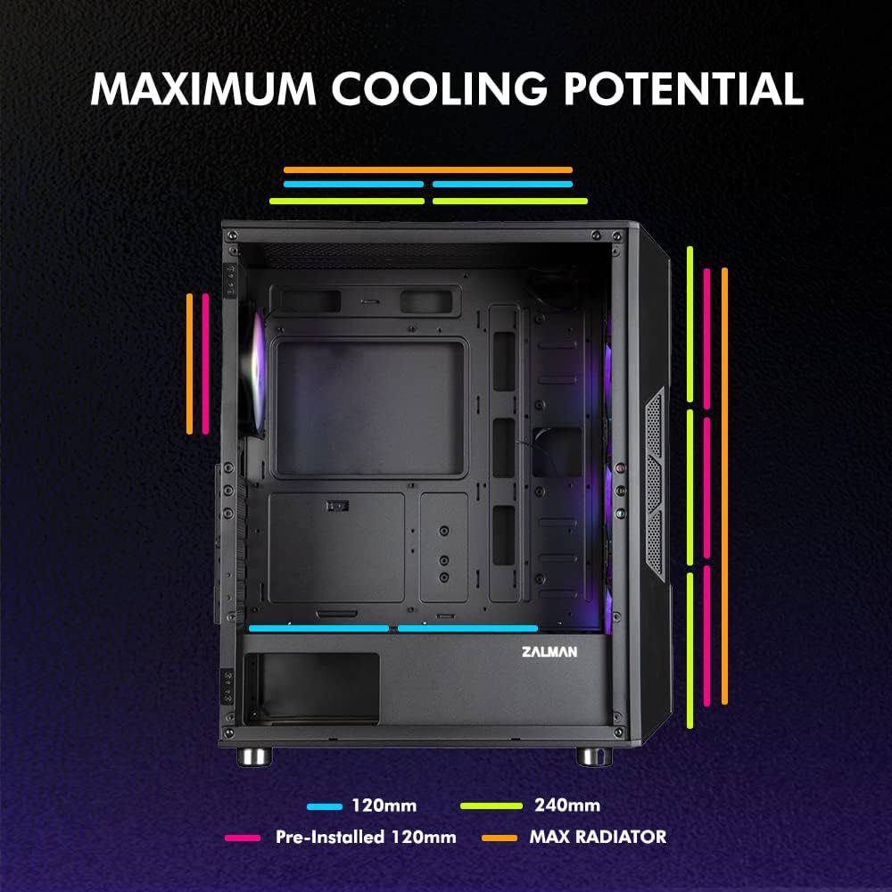 - წინა ქულერის ზომები: 3 x 120 მმ / 3 x 140 მმ ზედა: 2 x 120 მმ / 2 x 140 მმ უკანა: 1 x 120 მმ ქვედა: 2 x 120 მმ