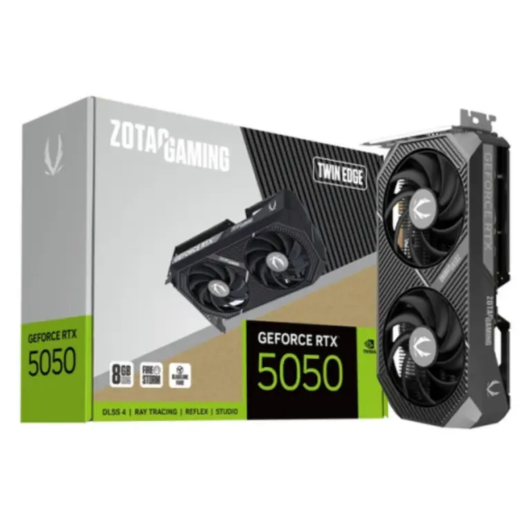 ვიდეო დაფა Zotac GAMING GeForce RTX5050 Twin Edge 8GB გთავაზობთ თანამედროვე გეიმინგისთვის საჭირო წარმადობას კომპაქტურ ფორმ-ფაქტორში. აღჭურვილია 8GB GDDR6 მეხსიერებით და 128-Bit ინტერფეისით, რაც უზრუნველყოფს სწრაფ მონაცემთა გადაცემას და ოპტიმალურ გრაფიკულ ხარისხს. NVIDIA RTX არქიტექტურა რეიტრეისინგისა და DLSS ტექნოლოგიებით თამაშებს მატებს რეალისტურ ვიზუალურ ეფექტებსა და მაღალ FPS-ს. Twin Edge დიზაინი ორი ვენტილატორით უზრუნველყოფს ეფექტურ გაგრილებასა და სტაბილურ მუშაობას, მაშინაც კი, როდესაც სისტემა მუშაობს ინტენსიური დატვირთვით. კომპაქტური ზომის გამო ის იდეალურია მცირე ზომის კორპუსებისთვისაც, მაგრამ არ კარგავს წარმადობას. მრავალმხრივი DisplayPort და HDMI პორტები იძლევა მრავალმონიტორიანი კონფიგურაციის შესაძლებლობას. ეს ვიდეო დაფა შესანიშნავია მათთვის, ვინც ეძებს სანდო, თანამედროვე და ენერგოეფექტურ გრაფიკულ ბარათს გეიმინგისა და ყოველდღიური საჭიროებებისთვის.<